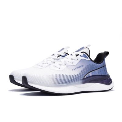 Një atlete moderne e krijuar nga një kombinim materiali tekstili cilësor dhe eko-lëkure. Shtresa e lartë siguron rehati dhe stabilitet, ndërsa aksentet dinamike në ngjyrë blu dhe të bardhë i japin një pamje të freskët dhe bashkëkohore. Ideale për përdorim të përditshëm dhe një stil jetese aktiv urban.