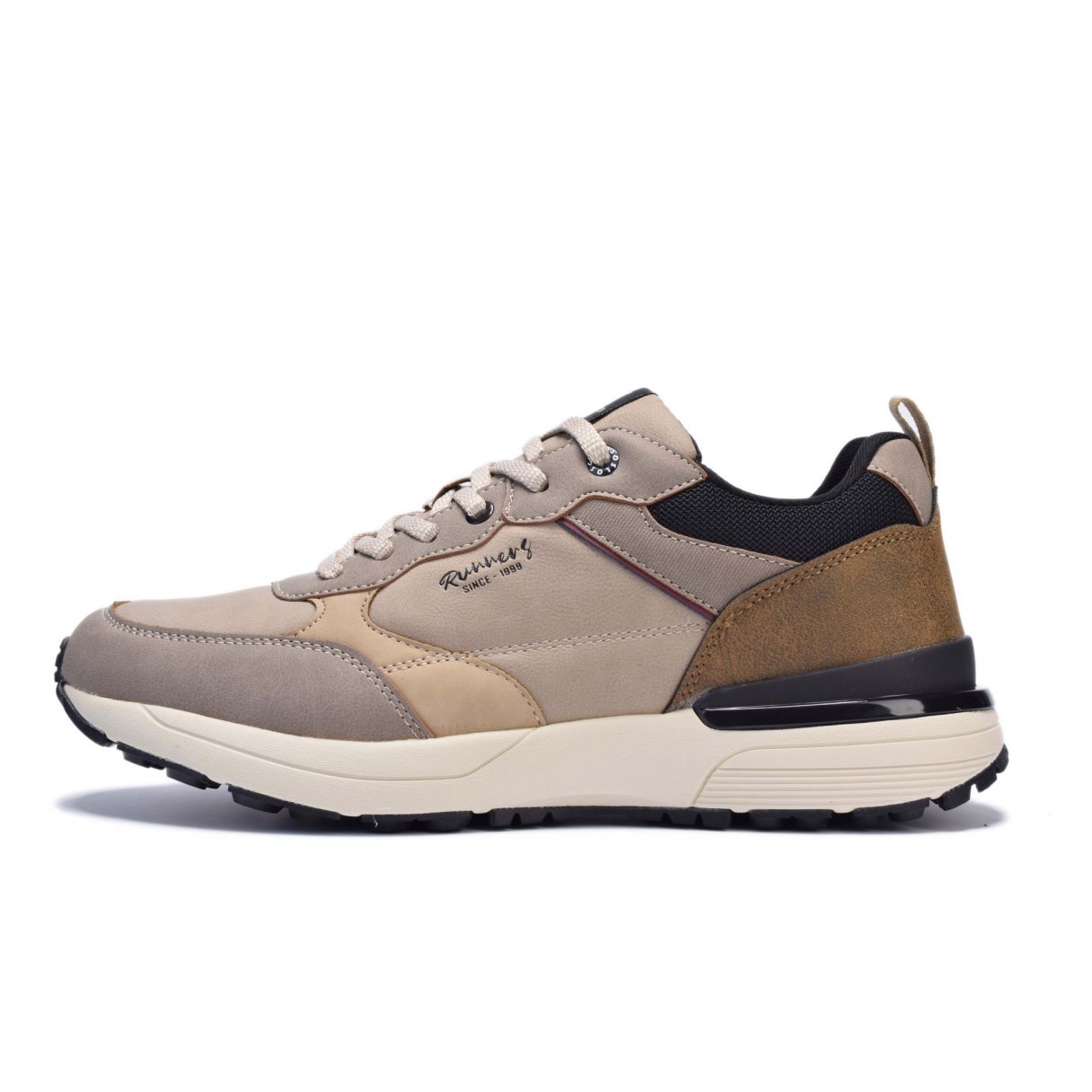 Atlete sportive për meshkuj Runners nga koleksioni i vjeshtës, të punuara nga eko-lëkurë cilësore. Modeli ofron rehati dhe qëndrueshmëri për përdorim të përditshëm, ndërsa shtresa e fortë siguron mbështetje dhe komoditet në çdo hap. Dizajni i tij universal lejon kombinim të lehtë me stile dhe raste të ndryshme.